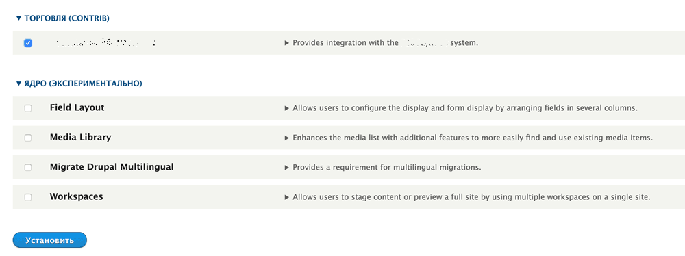 - Выберите модуль Commerce RBSPayment и нажмите Установить (см. рис. ниже).