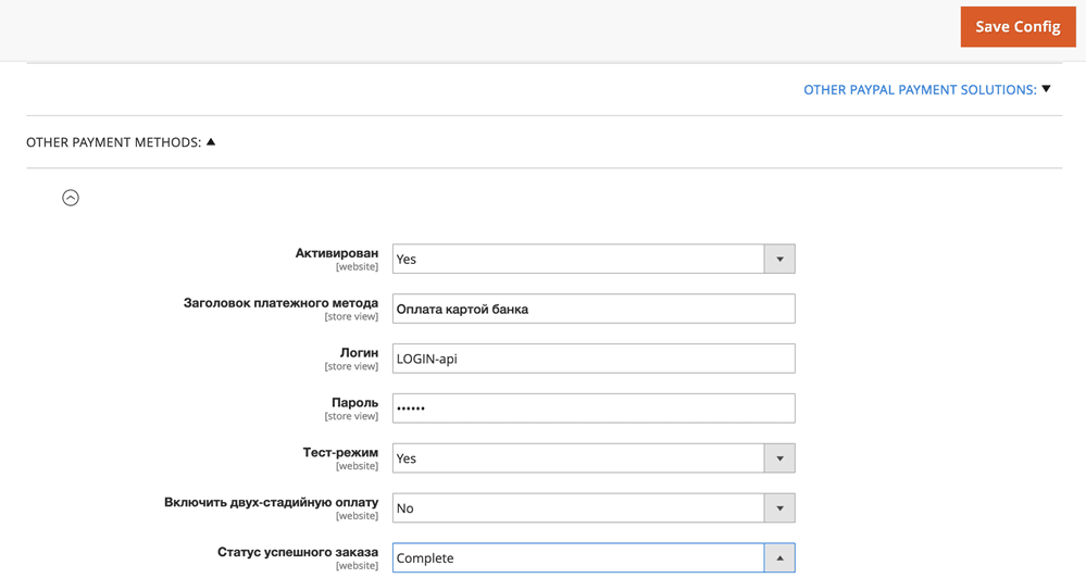 Чтобы настроить платежный плагин для Magento, выполните следующие действия.