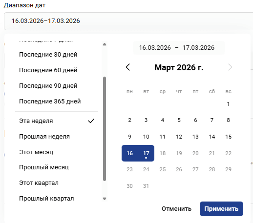 Если у пользователя есть аффилированные продавцы, выбор продавца становится доступным в выпадающем меню Продавец.