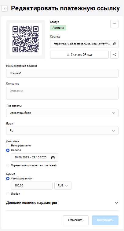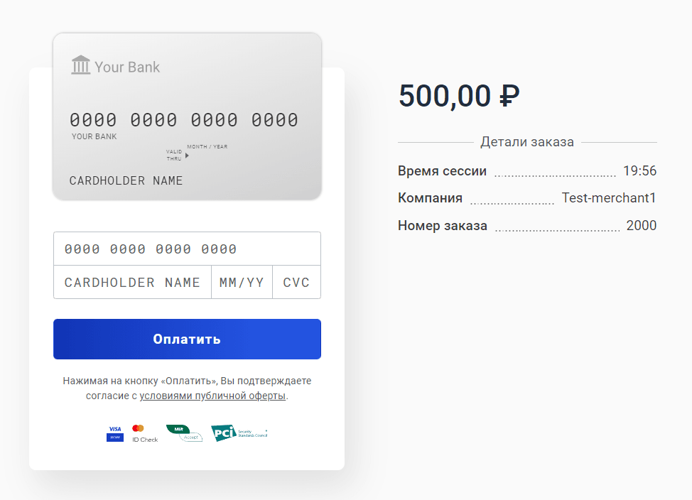 | Продолжительность сессии (в минутах) | Срок, отведенный для ввода данных карты с момента регистрации платежа. Если оплата не будет произведена в указанный срок, заказ перейдет в статус ОТКЛОНЕН. После этого будет отправлен callback, если он настроен. Изменение статуса таких заказов осуществляется по расписанию, поэтому возможны небольшие задержки. Если вы запросите статус по такому заказу, и по нему истекло время, заказ будет немедленно переведен в статус ОТКЛОНЕН. |