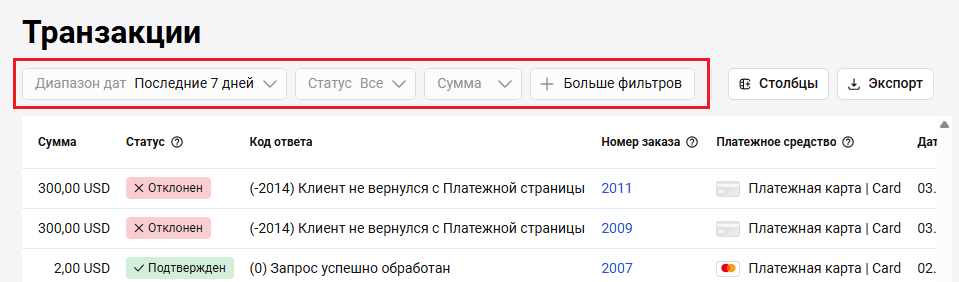 | Платежное средство | Платежное средство, которое было использовано для оплаты заказа. |